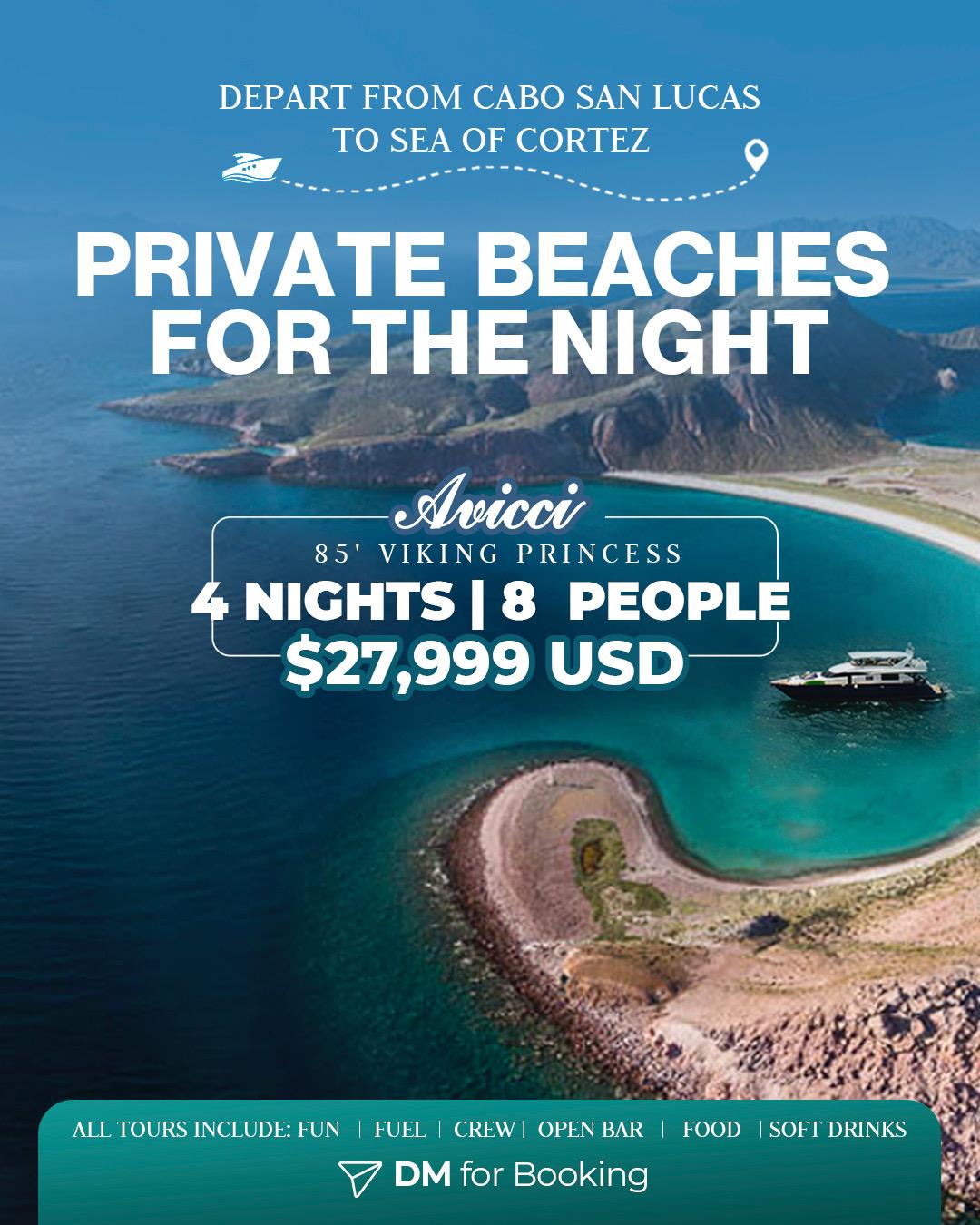 For Private Cruise - Full open bar: Vodka, Tequila, Whiskey, Rum, Mexican beers (international beer and wine available upon request) juices, soft drinks, and bottled water